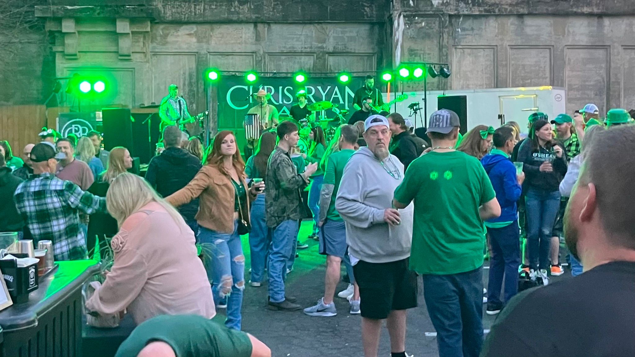 The parking lot becomes the party — live music, outdoor drinks, riverside vibes, and the best St. Patrick's energy downtown.